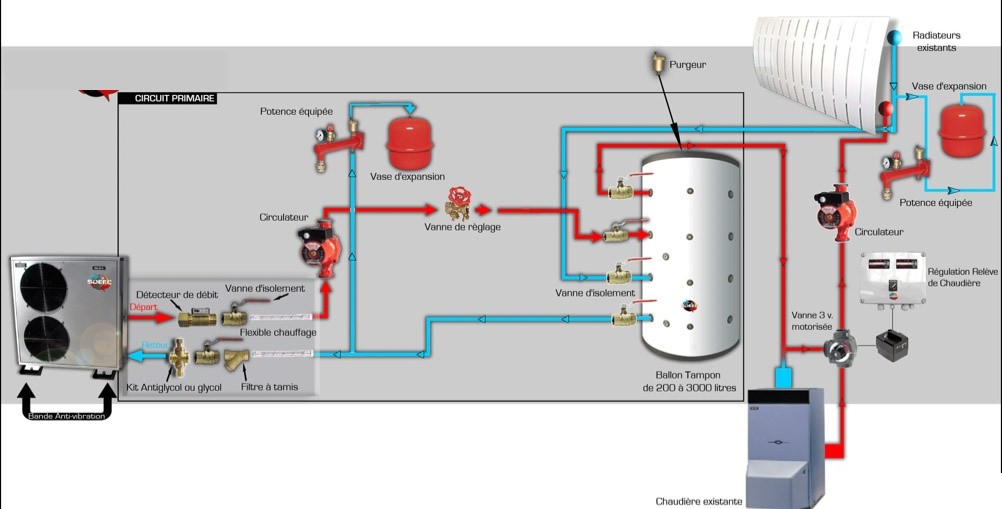 La pompe à chaleur est un dispositif thermodynamique de transfert d’énergie, basé sur la conduction de la chaleur d’un milieu émetteur à un milieu récepteur. La pompe à chaleur peut agir sur les systèmes de chauffage et de réfrigération. Elle peut peut tout à fait se combiner à d’autres sources